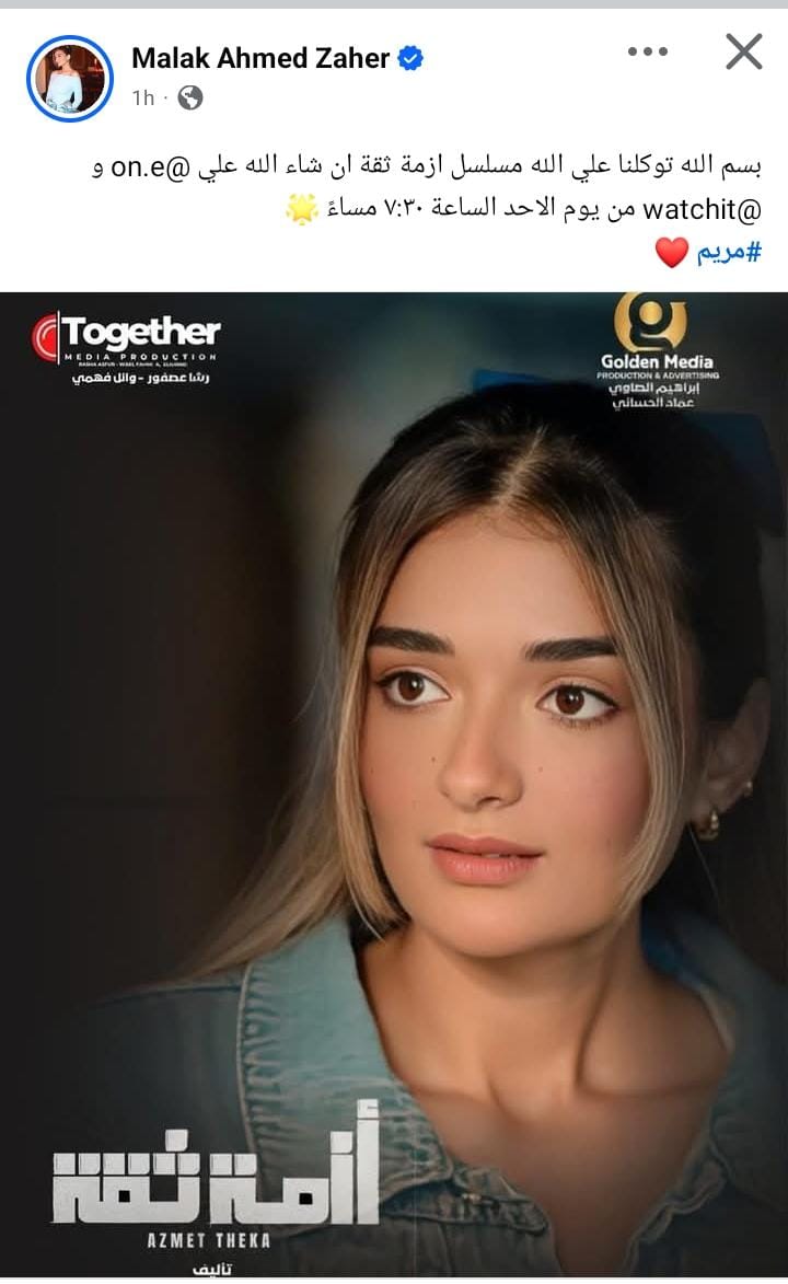 روجت الفنانة ملك أحمد زاهر لـ مسلسلها الجديد أزمة ثقة، الذي تشارك في بطولته بجانب الفنانة نجلاء بدر، وذلك قبل عرض أولى حلقاته حصريًا على شاشة قناة أون.