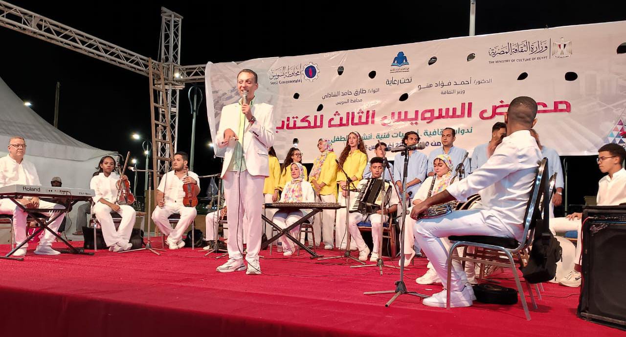 إقبال وتفاعل كبير مع فرقة الأنفوشي للموسيقى العربية في معرض السويس للكتاب