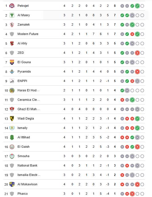 جدول الدوري المصري الجديد 2025 بعد ختام الجولة الرابعة