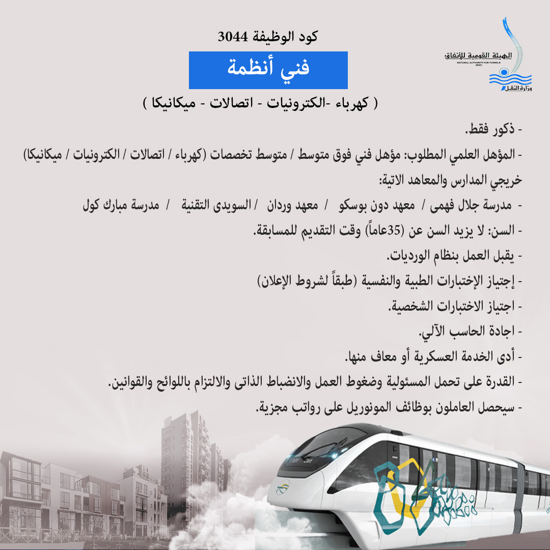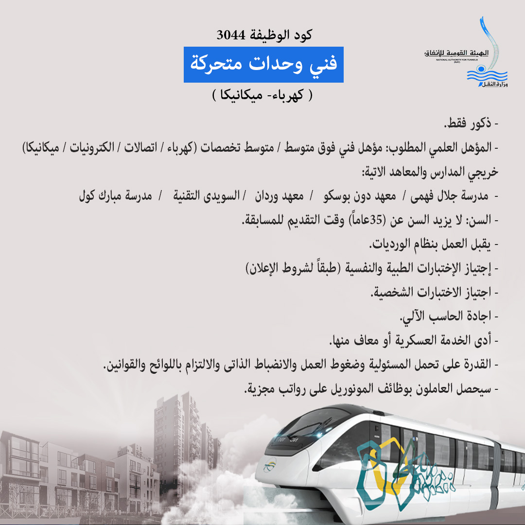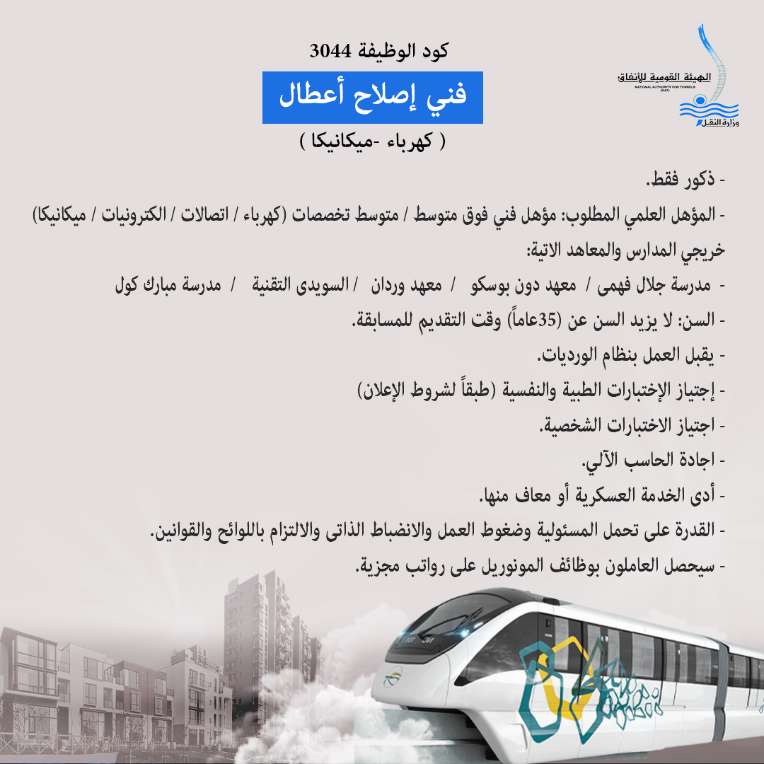 وظائف تشغيل وصيانة قطار المونوريل 2025