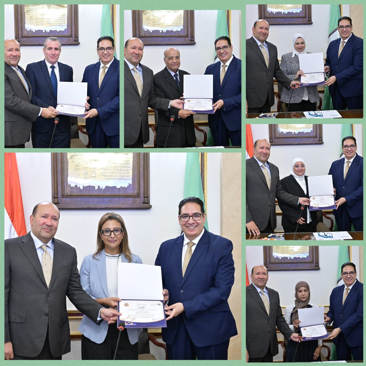 وأهدى دكتور محمد سامي عبد الصادق، درع الجامعة للسفير هشام بدر ولأعضاء لجنة التحكيم، كما قام بتكريم فرق عمل الجائزة مشيدا بجهودهم وأدائهم المتميز.