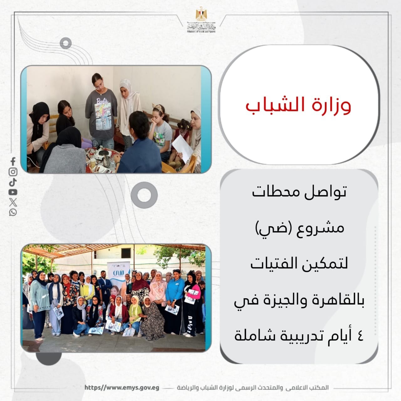 وزارة الشباب: تواصل محطات مشروع "ضي" لتمكين الفتيات بالقاهرة والجيزة