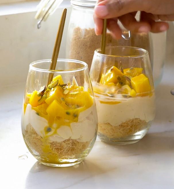 ألذ تحلية باردة.. خطوات عمل كاسات الكنافة بالمانجو