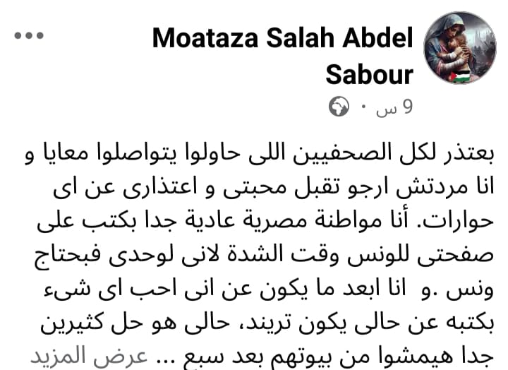 وبعد هذا المنشور بساعات تواصل إحدى الصحفيين مع الفنانة ، وأوضحت هذا في منشور أخر على "فيسبوك"، مُعلقة "بعتذر لكل الصحفيين اللى حاولوا يتواصلوا معايا و انا مردتش ارجو تقبل محبتى و اعتذارى عن اى حوارات".