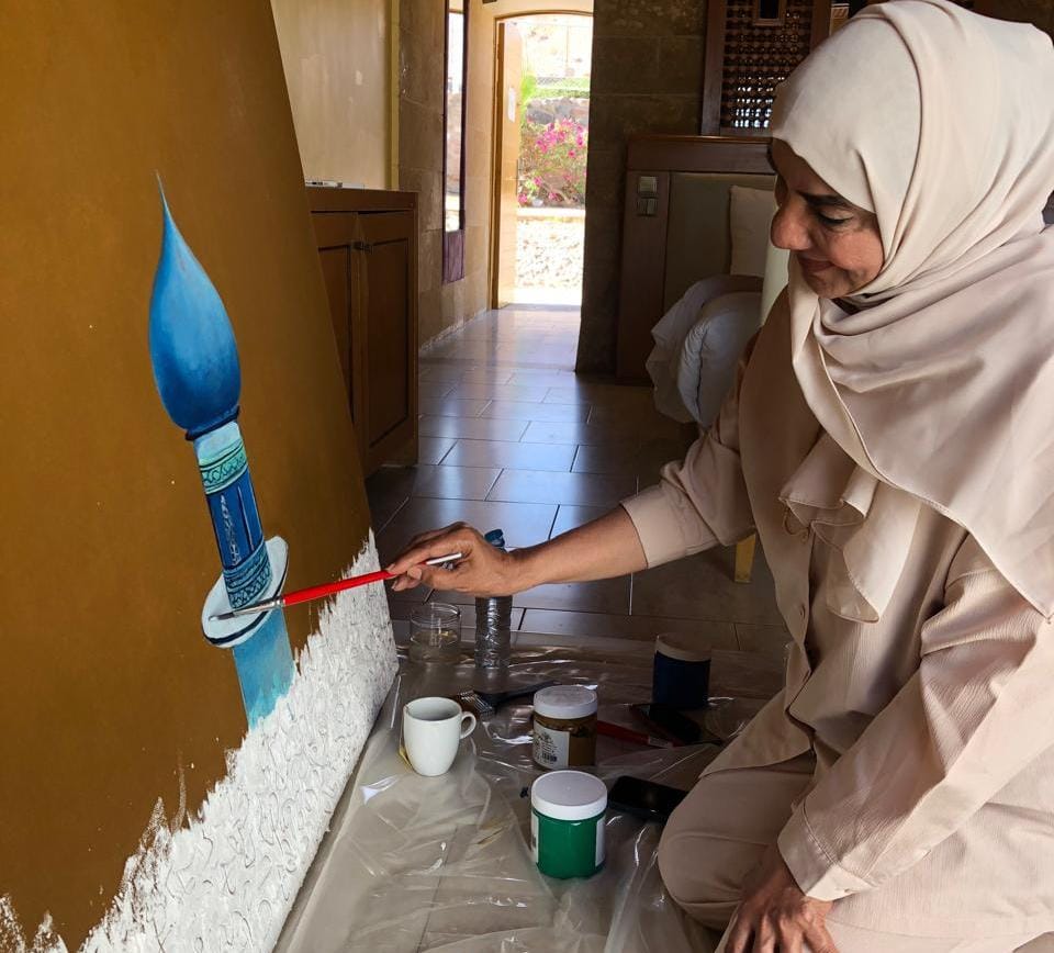 من ناحيتها، أوضحت الفنانة العمانية مريم الزدجالية، أنها اعتمدت اللون الأبيض كقاعدة أساسية للعمل، وأدخلت عليه عناصر من الخط العربي والحروف كجزء من التكوين الفني، وأضافت أن إقامتها في دهب أعادت إلى ذاكرتها مدينتها الساحلية "مطرح"، لما تحمله من تشابه في البيوت البيضاء مع بيوت دهب، مؤكدة أنها حرصت على ربط العمل بالبعد العربي المشترك بما يخلق قواسم ثقافية وفنية بين المكانين.
