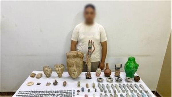 جاء ذلك فى إطار جهود الأجهزة الأمنية لمكافحة جرائم الحفر والتنقيب غير المشروع عن الآثار والإتجار بها، فقد أكدت معلومات وتحريات قطاعى "شرطة السياحة والآثار ، الأمن العام" حيازة (تاجر أدوات منزلية– مقيم بالمنيا) عدد من القطع الأثرية المتنوعة تمهيداً للإتجار بها .