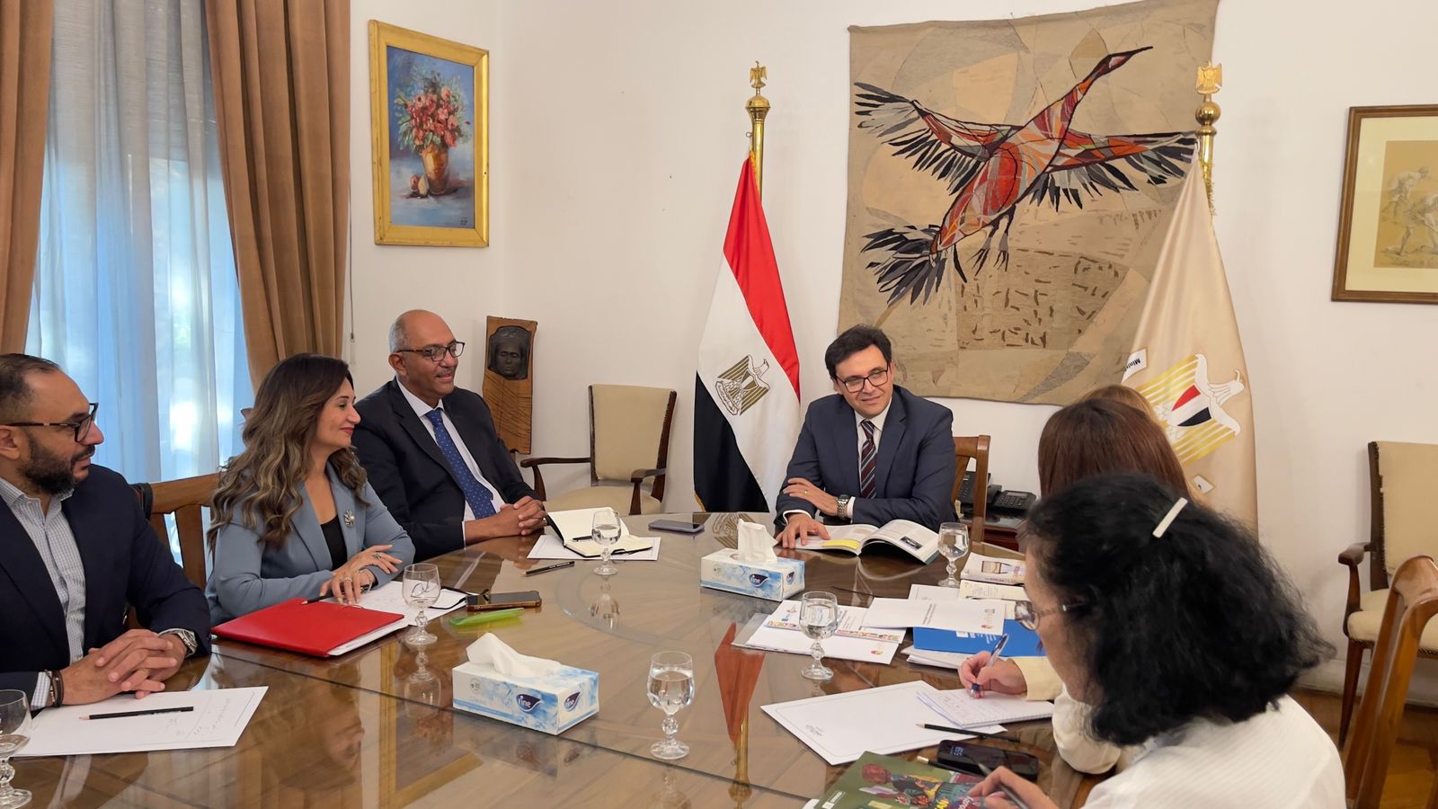 وتناول الاجتماع مناقشة مجموعة من المقترحات، منها المشاركة في مؤتمر الإبداع والذكاء الاصطناعي الذي تستعد الوزارة لعقده قريبًا، على أن تساهم اليونسكو من خلال توفير الخبرات والمتخصصين في هذا المجال، وكذلك تقديم الدعم الكامل للفريق المصري المنتظر مشاركته في “المؤتمر العالمي للسياسات الثقافية والتنمية المستدامة” الذي تنظمه الأمم المتحدة ممثلة في اليونسكو بمدينة برشلونة خلال الفترة من 29 سبتمبر حتى 1 أكتوبر 2025. كما جرى بحث التعاون في مجال المتاحف الفنية وتطويرها وتدريب العاملين بها، فضلًا عن استغلال أكاديمية الفنون المصرية بروما كمركز إشعاع ثقافي للتواصل مع الدول الأوروبية.