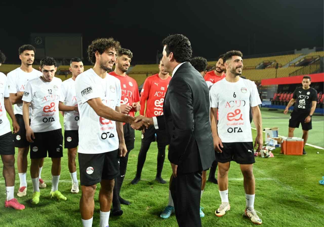 قبل مواجهة إثيوبيا بتصفيات كأس العالم.. وزير الرياضة يشهد مران المنتخب الوطني