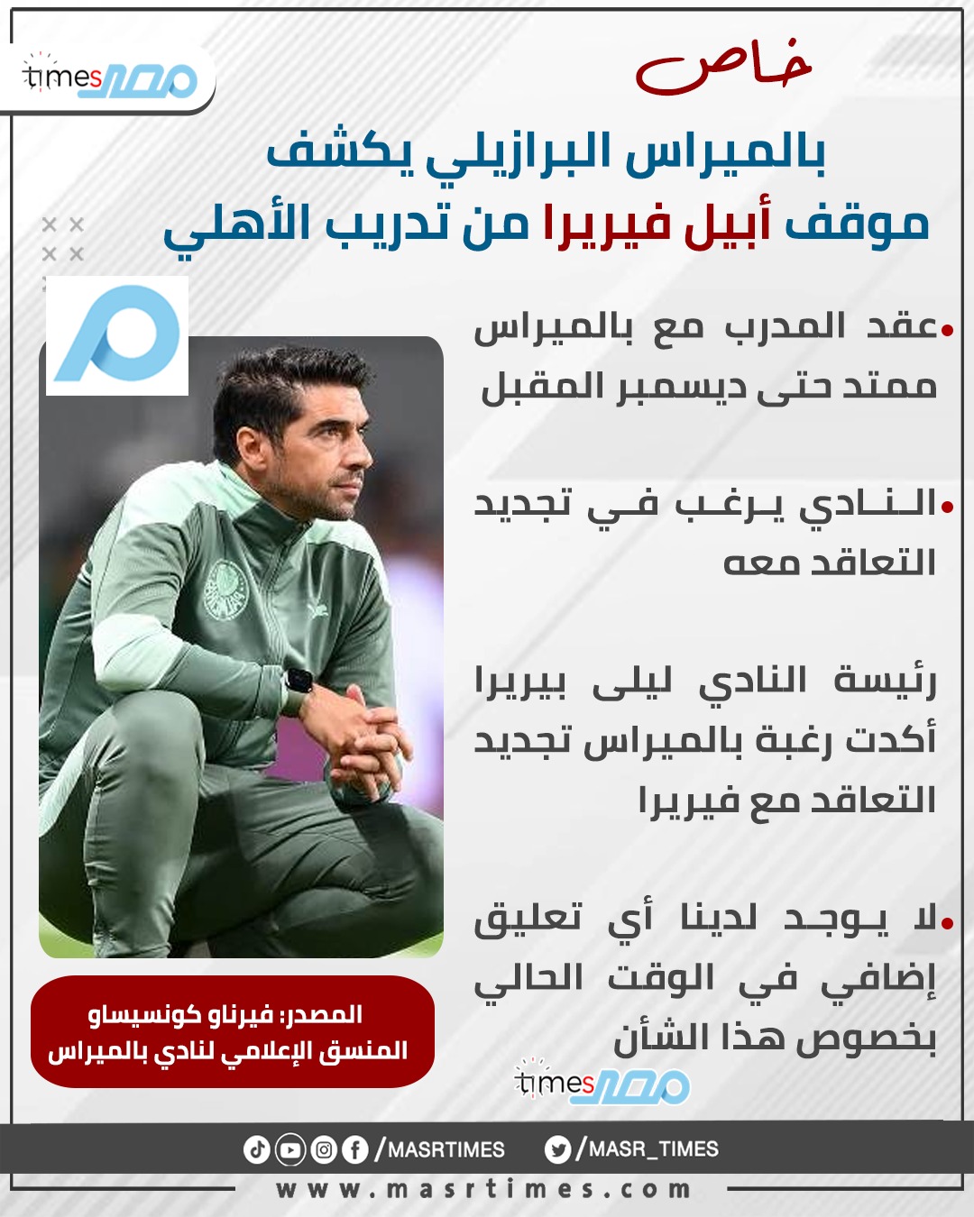 وقال كونسيساو في تصريحات خاصة لـ"مصر تايمز":"عقد أبيل فيريرا مع بالميراس ممتد حتى ديسمبر المقبل، والنادي يرغب في تجديد التعاقد، وهو ما أكدته رئيسة النادي ليلى بيريرا سابقًا. لا يوجد لدينا أي تعليق إضافي في الوقت الحالي."