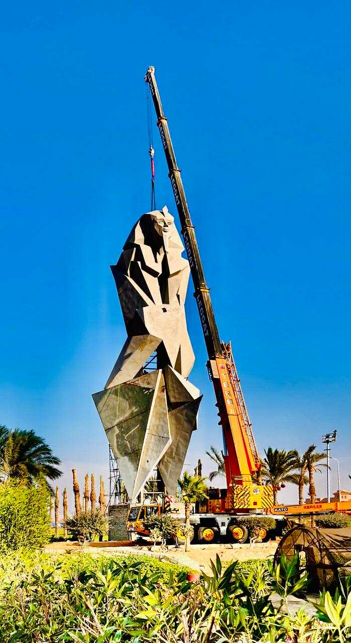 وأضاف أن العمل ليس مثل تمثال رمسيس كما يتداول البعض، بل يرمز إلى الملامح المصرية القديمة بأسلوب رمزي يحافظ على الهوية ويعبر عنها برؤية حديثة.