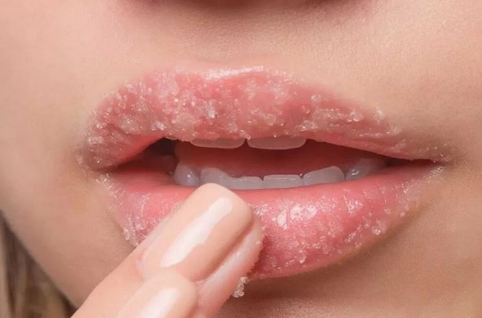 السكر : اخلطي مع السكر زيت مرطب مثل الجوجوبا أو الزيتون، ، لتقشير الشفاه برفق لمدة 30 ثانية، ثم شطفه جيدًا، وكررى هذه العملية من مرة إلى مرتين فى الأسبوع.