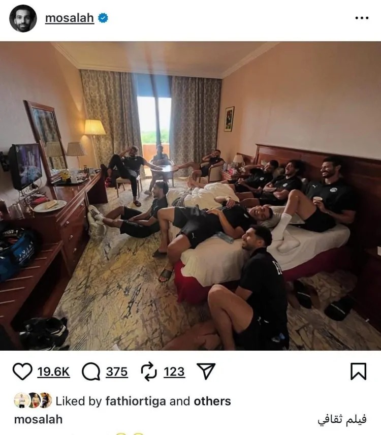 شارك النجم المصري محمد صلاح لاعب ليفربول وقائد المنتخب الوطني، صورة تجمعه بزملائه من فندق الإقامة في بوركينا فاسو، وعلق عليها بعبارة: "فيلم ثقافي"، في إشارة طريفة إلى الفيلم المصري الشهير.
