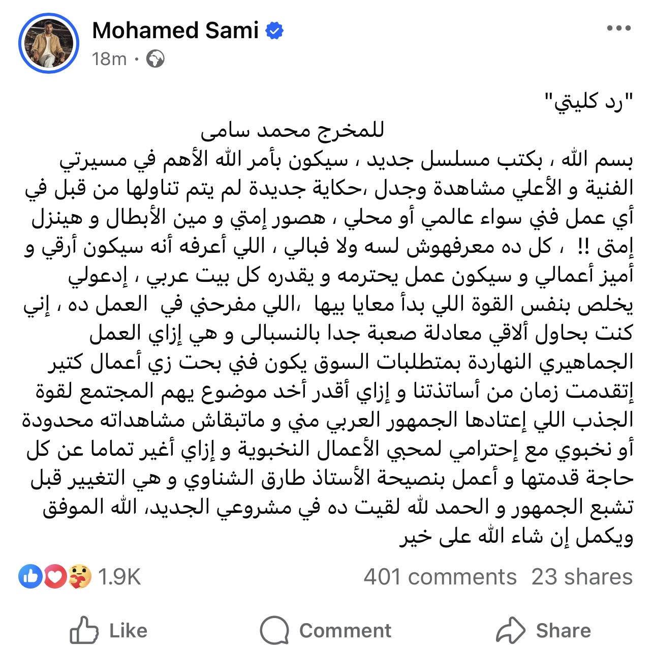 مفاجأة.. المخرج محمد سامي يتراجع عن قرار الاعتزال ويعود بمسلسل "رد كليتي"