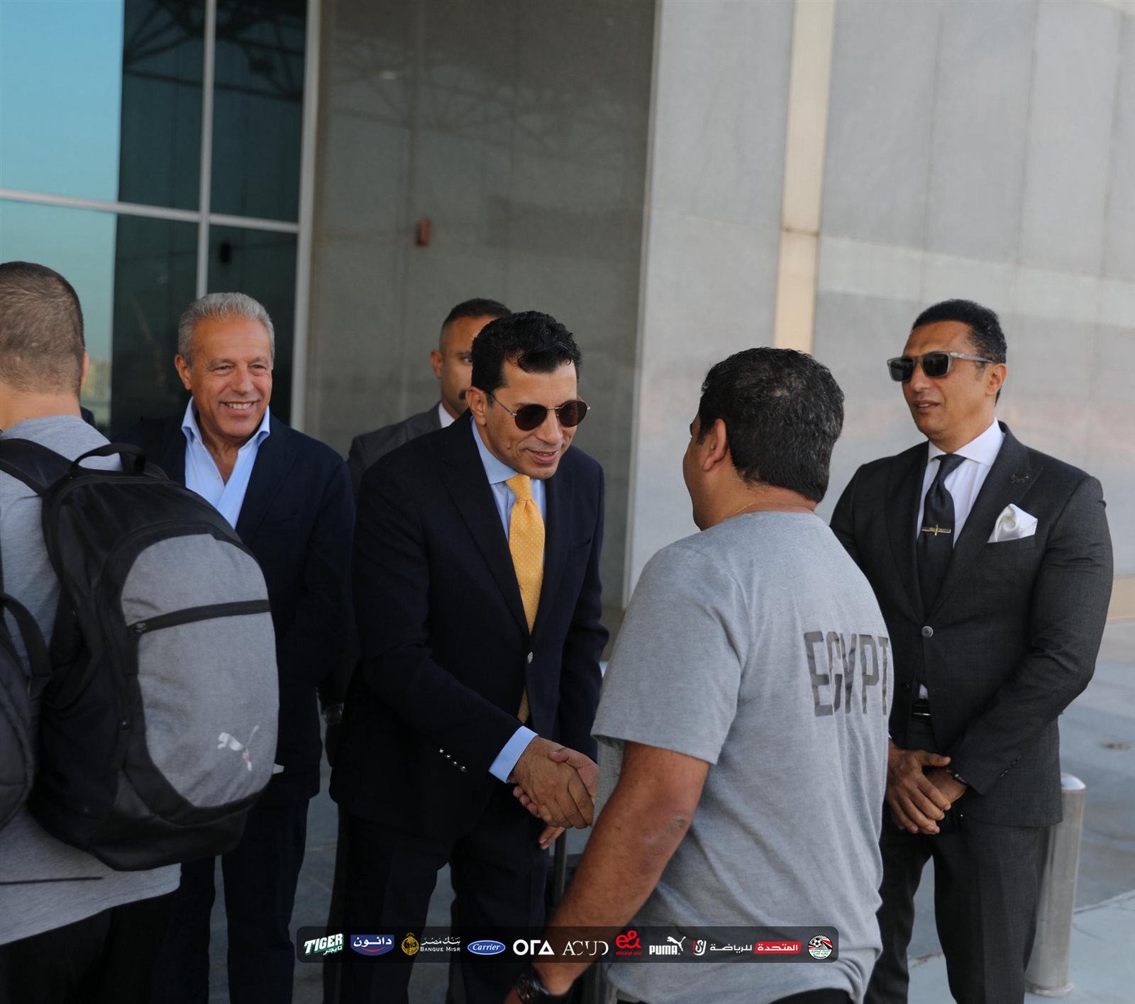 وكان في استقبال البعثة وزير الشباب والرياضة الدكتور أشرف صبحي، حيث حرص على تهنئة الجهاز الفني واللاعبين على الأداء، رغم نتيجة التعادل. وقاد البعثة التوأم حسام وإبراهيم حسن، المدير الفني ومدير المنتخب.