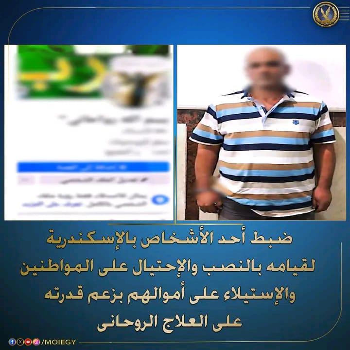 ألقت الأجهزة الأمنية القبض على أحد الأشخاص بتهمة النصب والإحتيال على المواطنين والإستيلاء على أموالهم من خلال الزعم بقدرته على العلاج الروحانى وقيامه بممارسة أعمال الدجل ، والترويج لنشاطه الإجرامى بمواقع التواصل الإجتماعى.