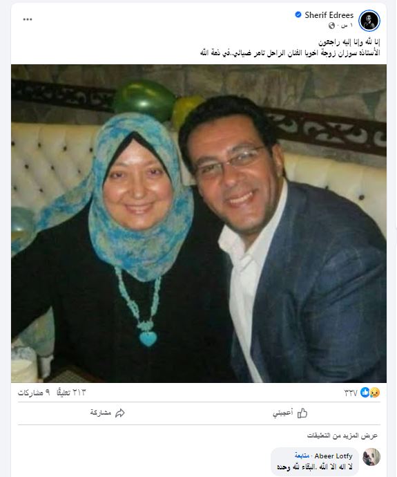 أعلن الفنان شريف إدريس منذ قليل وفاة أرملة الفنان الراحل تامر ضيائي وذلك بعد صراع مع المرض وكتب عبر صفحته الرسمية على موقع التواصل الإجتماعي" فيس بوك " إنا لله وإنا إليه راجعون الأستاذة سوزان زوجة اخويا الفنان الراحل تامر ضيائي..في ذمة الله ".