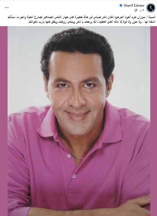 وكان كشف الفنان شريف إدريس من قبل تفاصيل الحالة الصحية لزوجة الفنان الراحل تامر ضيائي مشيرا إلى أنها وضعت على أجهزة التنفس الصناعي حيث كتب " السيدة / سوزان حرم أخونا المرحوم الفنان تامر ضيائى فى حالة خطيرة على جهاز التنفس الصناعى تصارع الحياة والموت، نسألكم الدعاء لها ، ولا حول ولا قوة إلا بالله العلى العظيم…الله يرحمك يا تامر ويشفي زوجتك ويعفو عنها يارب دعواتكم".