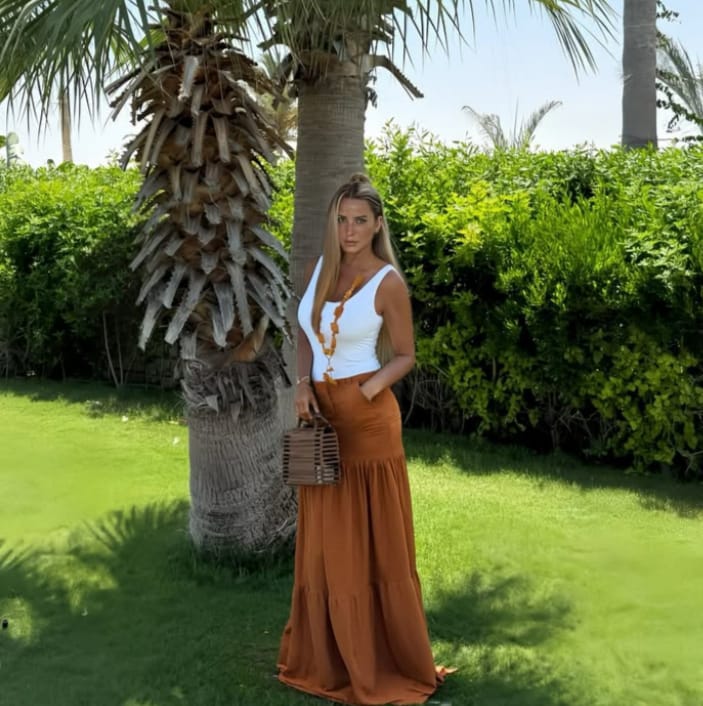 شاركت الفنانة ريم مصطفى متابعيها و محبيها بصور جديدة لها عبر صفحتها الشخصية بموقع تبادل الصور والفيديوهات القصيرة "انسجرام"،حيث ظهرت بإطلالة أنيقة وجذابة وكانت ترتدي تنورة طويلة باللون الجملي الفاتح،مع توب أبيض مكشوف من الذراعين،مع أرتدائها نظارة شمسية،وبيديها حقيبة يدوية على شكل خشبية بها فتحات.