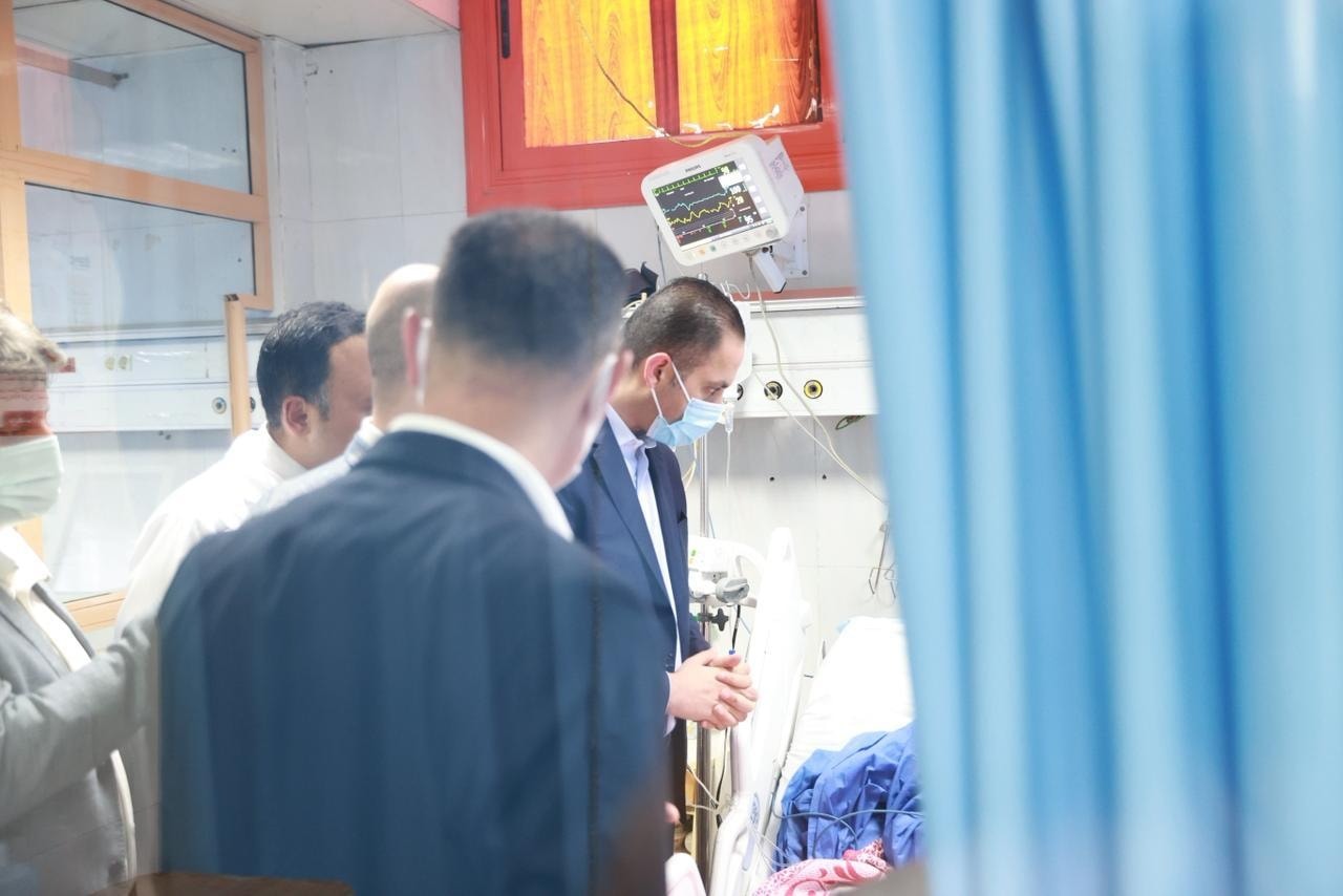 وشملت الجولة مستشفى التأمين الصحي، حيث تفقد نائب الوزير غرف العمليات، العنايات المركزة، وقسم العلاج الكيميائي، موجهًا برفع كفاءة المستشفى وإعادة تشغيل المباني القديمة. كما اطمأن على توافر الأدوية والمستلزمات الطبية في المخازن، وأصدر توجيهات بإدخال طفايات حريق لتعزيز السلامة المهنية.
