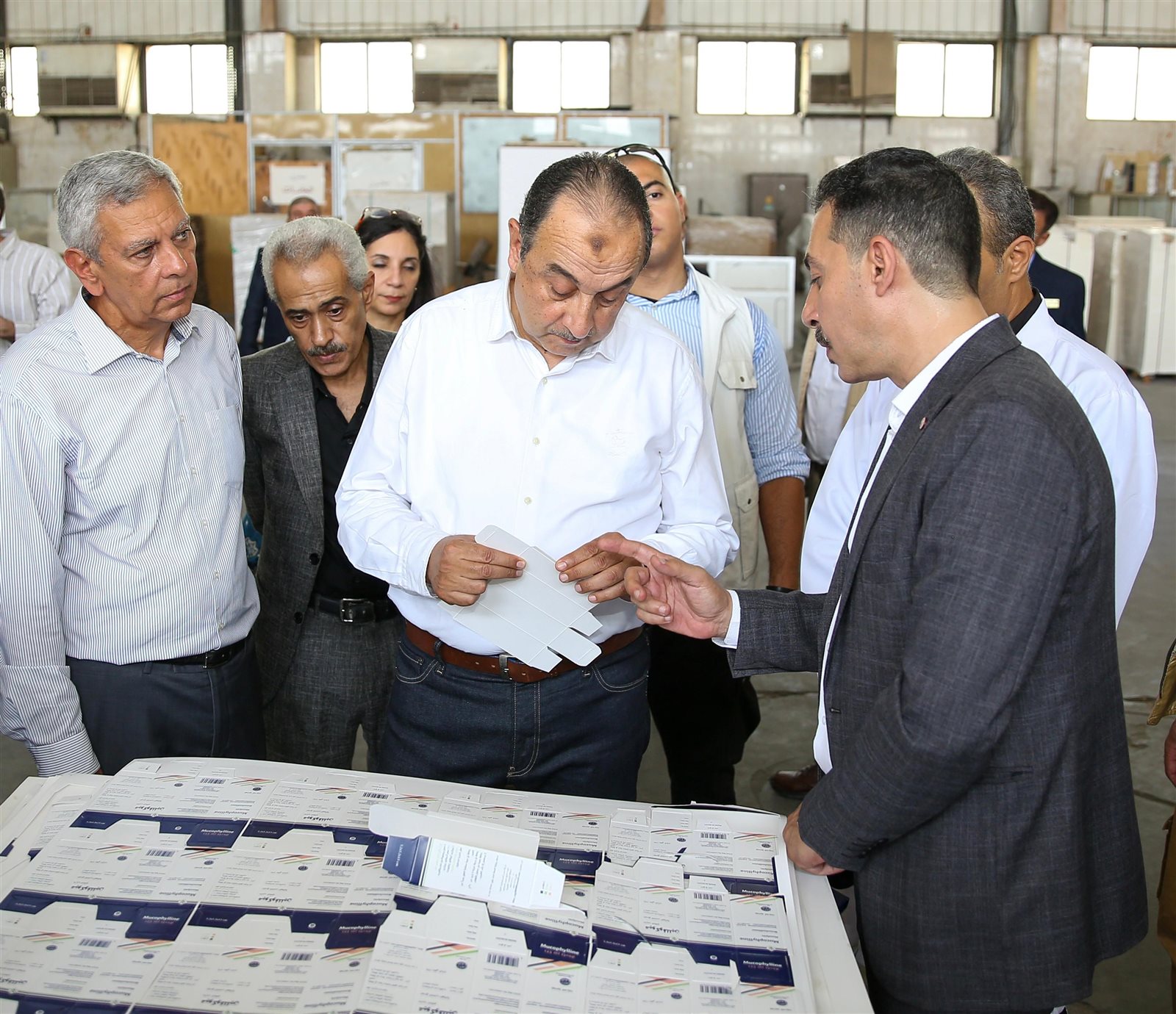 تفقد الوزير خطوط الإنتاج التي تضم مصانع الأنابيب والبلاستيك والكرتون والمطابع الورقية، والتي تنتج العبوات الداخلية والخارجية للأدوية من البلاستيك والأنابيب المعدنية وعلب الكرتون والمطبوعات.