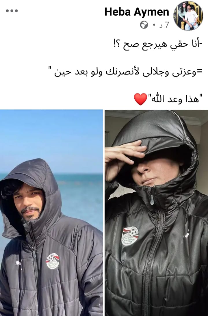 كتبت هبة أيمن عبر صفحتها الشخصية "فيسبوك":"أنا حقي هيرجع صح ؟! وعزتي وجلالي لأنصرنك ولو بعد حين هذا وعد الله".