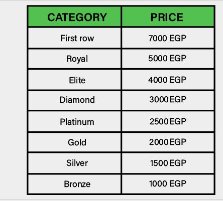 وجاءت أسعار تذاكر الحفل كالاتي :