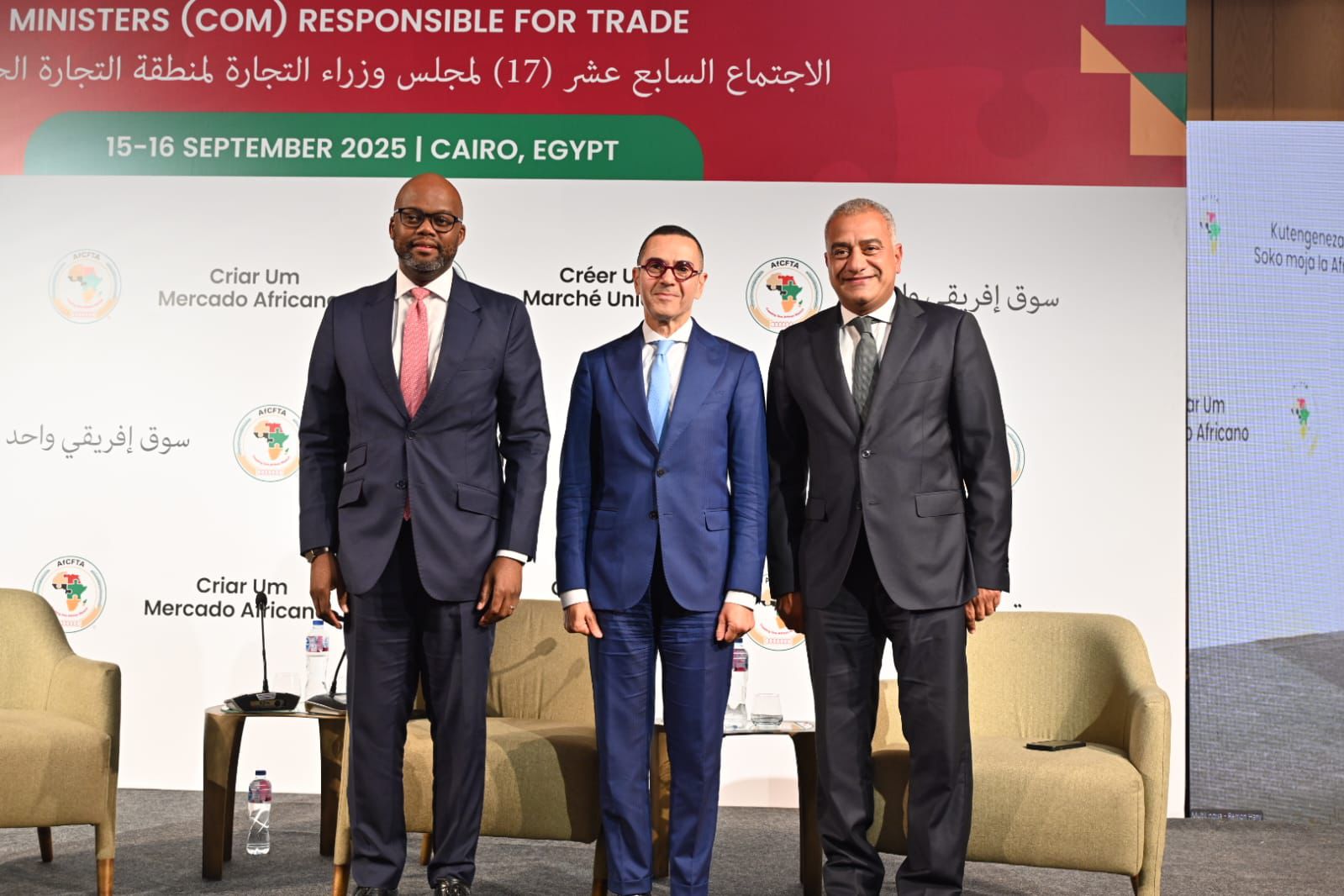 عُقد حوار رفيع المستوى جمع بين المهندس حسن الخطيب، وزير الاستثمار والتجارة الخارجية، والسيد وامكيلي ميني، الأمين العام لمنطقة التجارة الحرة القارية الإفريقية (AfCFTA)، وممثلي القطاع الخاص، وذلك على هامش الخلوة الوزارية الرابعة للتجارة الأفريقية بالقاهرة.