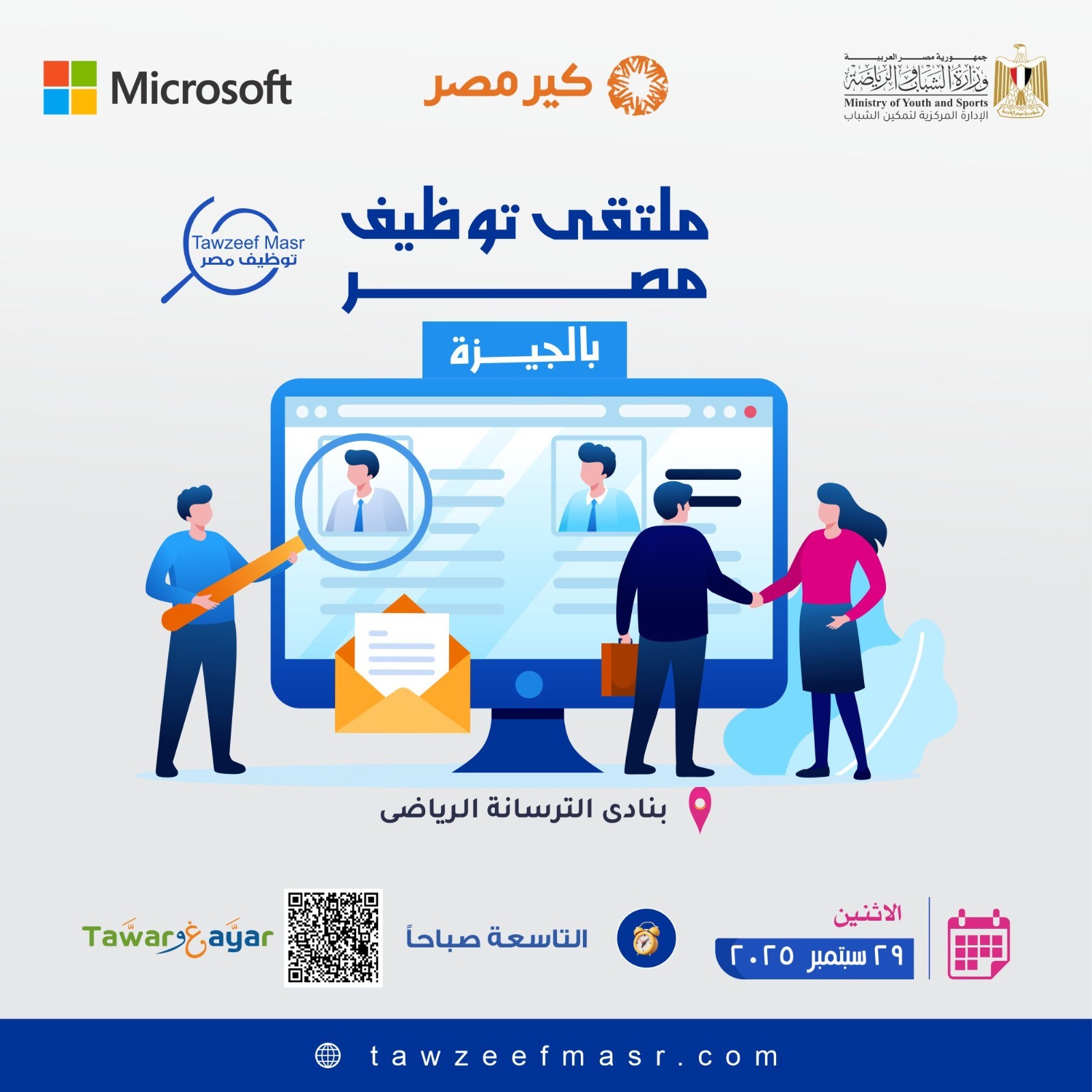 الموعد من يوم الاثنين 29 سبتمبر 2025 من الساعة 9 صباحا إلى 3 عصرا.