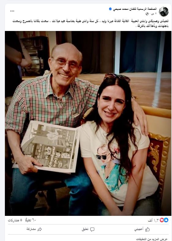 حرص الفنان الكبير محمد صبحى على تهنئة الفنانة ميرنا وليد بمناسبة عيد ميلادها ووجه لها رسالة خاصة عبر صفحته الرسمية "فيس بوك" ونشر صورة تجمعهما وعلق عليها "تلميذتي و صديقتي وابنتي الحبيبة الغالية الفنانة ميرنا وليد .. كل سنة وانتي طيبة بمناسبة عيد ميلادك .. سعدت بلقائنا بالمسرح وسعدت باجتهادك وبأخلاقك بالفرقة ".