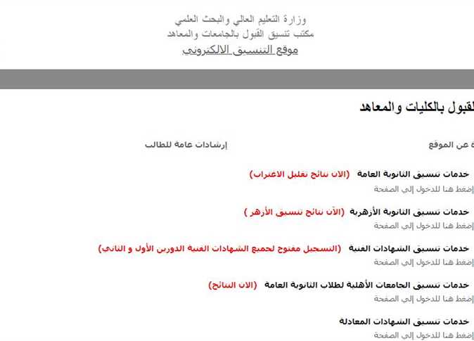 خطوات الاستعلام عن النتيجة عبر موقع التنسيق