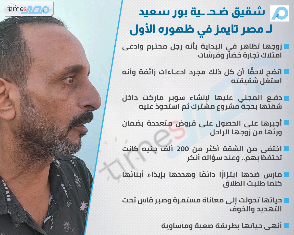 وأوضح الشقيق أن المتهم دفعها لإنشاء مشروع سوبر ماركت داخل شقتها بدعوى أنه مشروع مشترك، بينما استولى على العائد المادي لنفسه، ثم أجبرها على الاستدانة والقروض المتكررة مستغلًا ميراثها من زوجها الراحل. ومع مرور الوقت تحولت حياتها – بحسب وصفه – إلى "سلسلة متواصلة من الضغوط المالية والابتزاز".