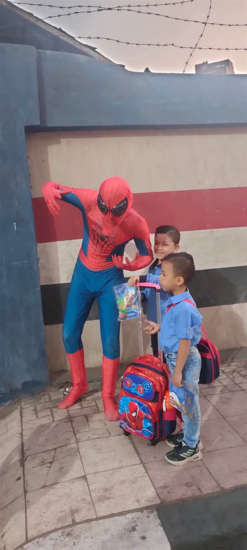 شهدت مدرسة معاذ بن جبل بمدينة دمنهور بمحافظة البحيرة واقعة طريفة مع انطلاق العام الدراسي الجديد، بعدما فوجئ التلاميذ بظهور شخصية "سبايدر مان" أمام بوابة المدرسة.