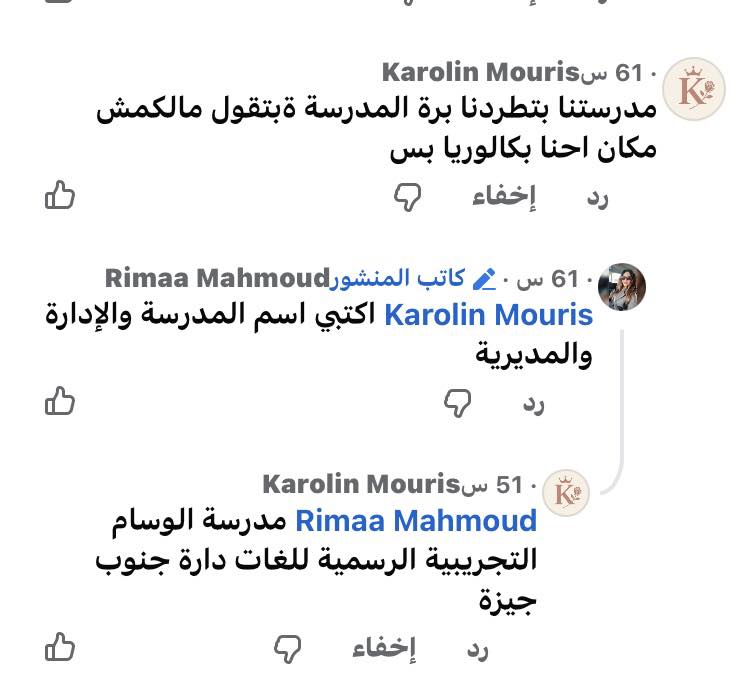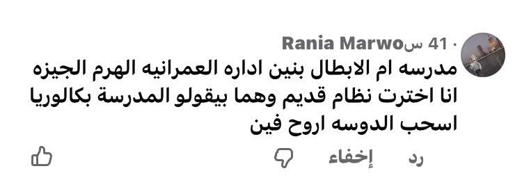 وكتبت إحدى أولياء الأمور على صفحات التواصل، "مدرسة أم الأبطال بنين إدارة العمرانية الهرم الجيزة.. اخترت نظام قديم وهما بيقولوا المدرسة بكالوريا اسحب الدوسيه أروح فين؟"، وهذ الأمر يدل على تعنت المدرسة وإصرارها على إلغاء النظام القديم.