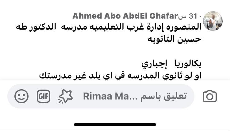 فيما أضاف ولي أمر آخر من المنصورة، قائلا "مدرسة الدكتور طه حسين الثانوية.. بكالوريا إجباري أو لو ثانوي المدرسة في أي بلد غير مدرستك، بيقولوا ده قرار من وزير التربية والتعليم"، وهو ما أثار حالة من الغضب بين أولياء الأمور.