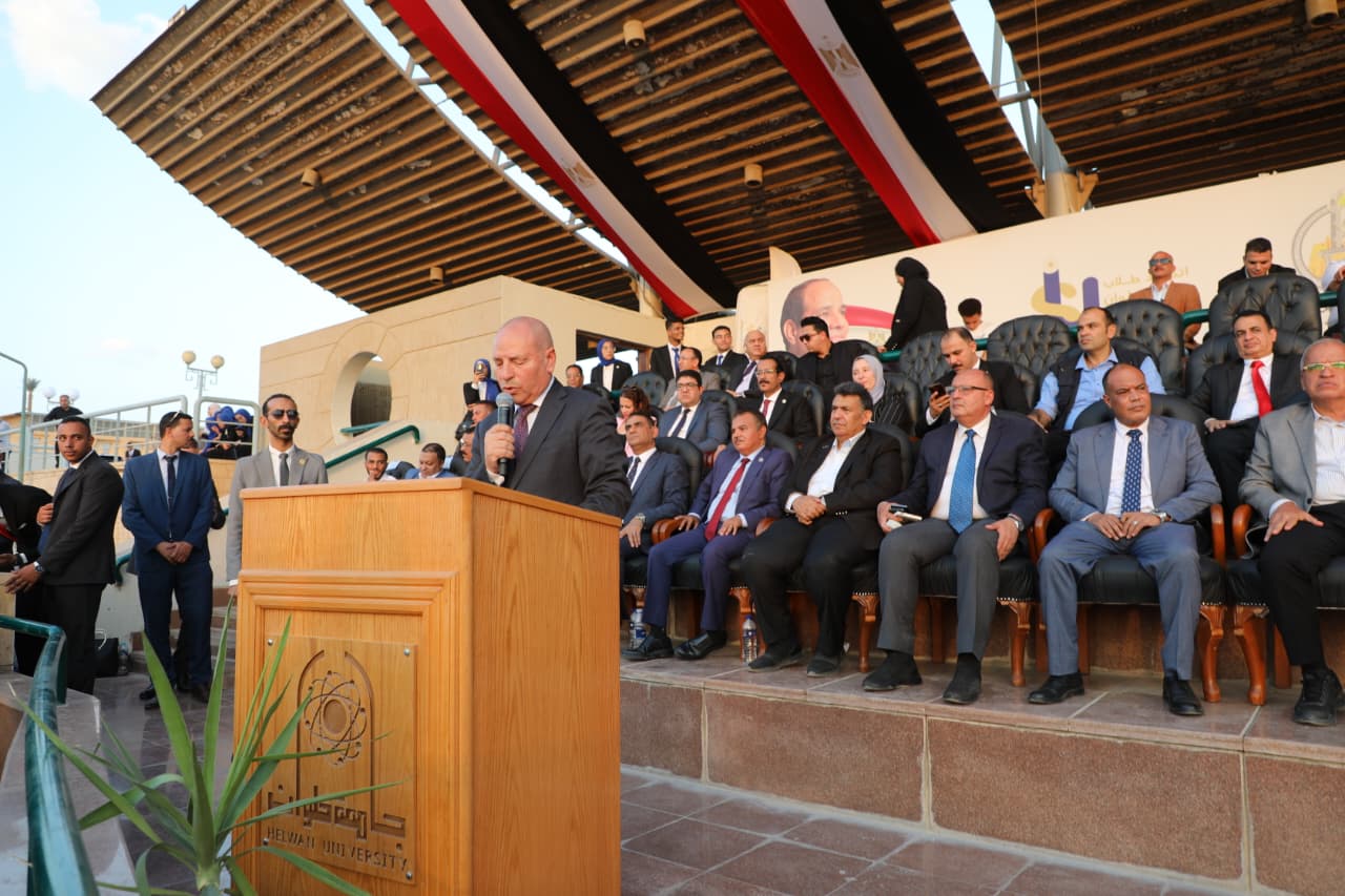 وأكد محافظ القاهرة في كلمته أن جامعة حلوان بتاريخها العريق واسهاماتها الأكاديمية والعلمية تمثل أحد الأعمدة الأساسية للنهضة العلمية والفكرية في وطننا ، وقدمت ولاتزال تقدم للوطن أجيالا قادرة على صنع الفارق، والمساهمة في مسيرة التنمية الشاملة التى يقودها الرئيس عبدالفتاح السيسي رئيس الجمهورية من أجل بناء الجمهورية الجديدة .