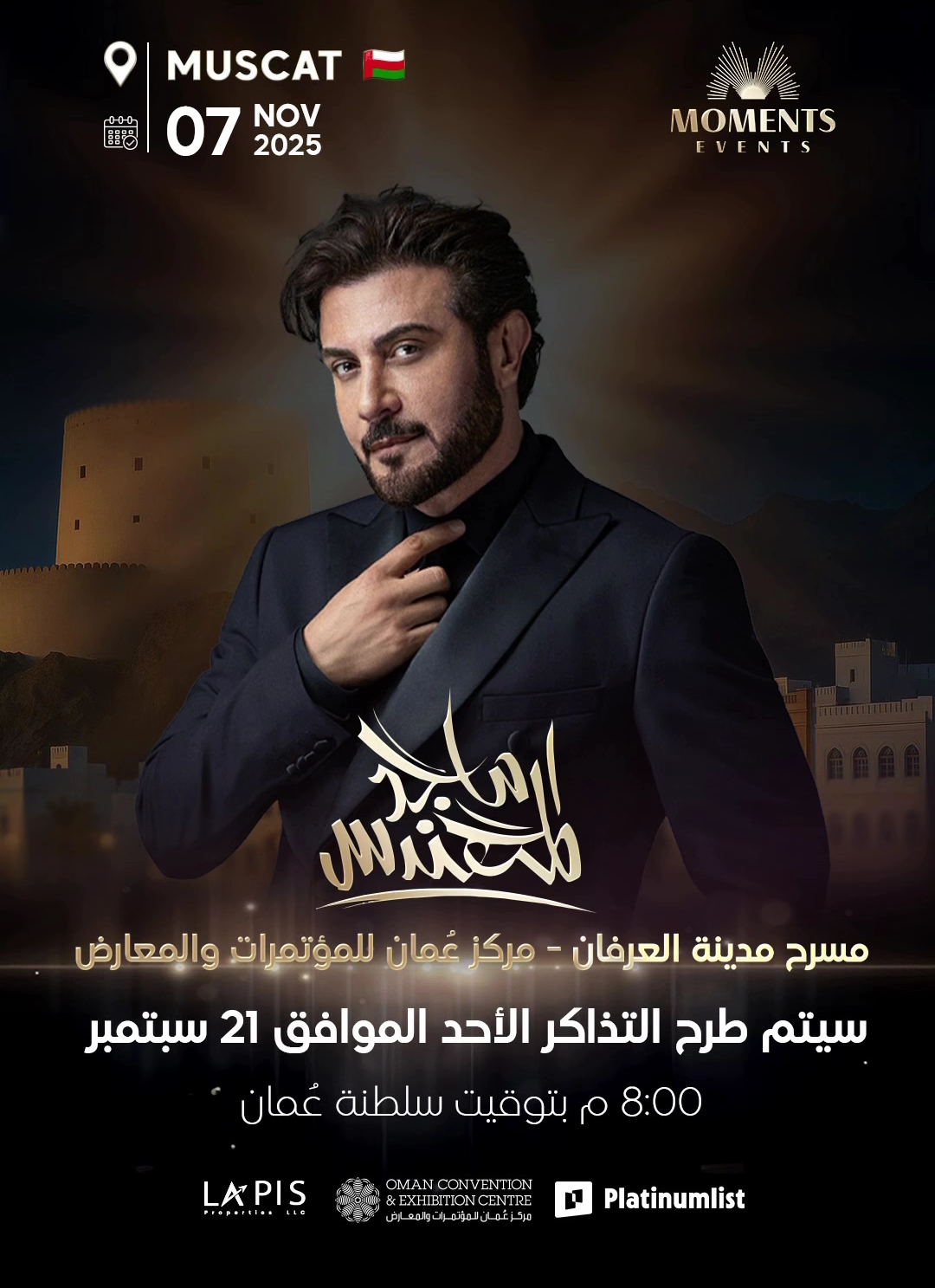 يحيي الفنان ماجد المهندس حفلا غنائيا على مسرح مدينة العرفان بمركز عمان للمؤتمرات.