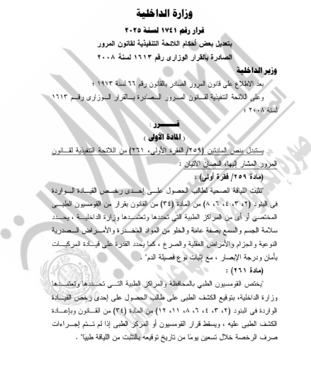 الجريدة الرسمية تنشر قرار وزارة الداخلية بتعديل لائحة استخراج رخصة القيادة