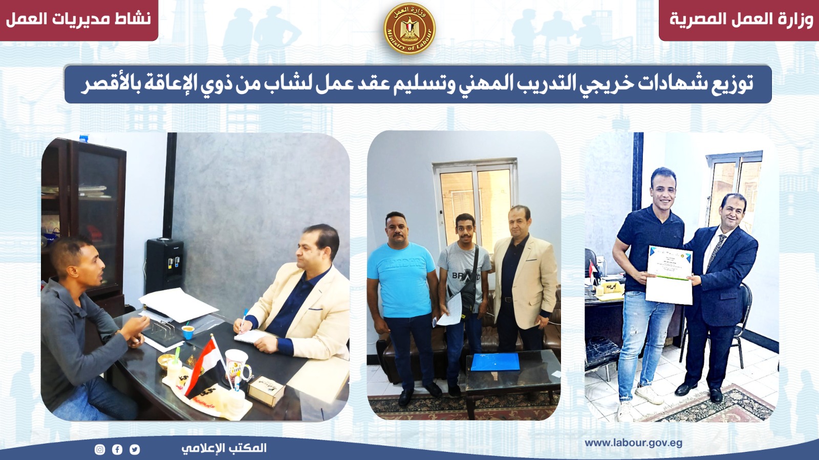 7-توزيع شهادات خريجي التدريب المهني وتسليم عقد عمل لشاب من ذوي الإعاقة بالأقصر