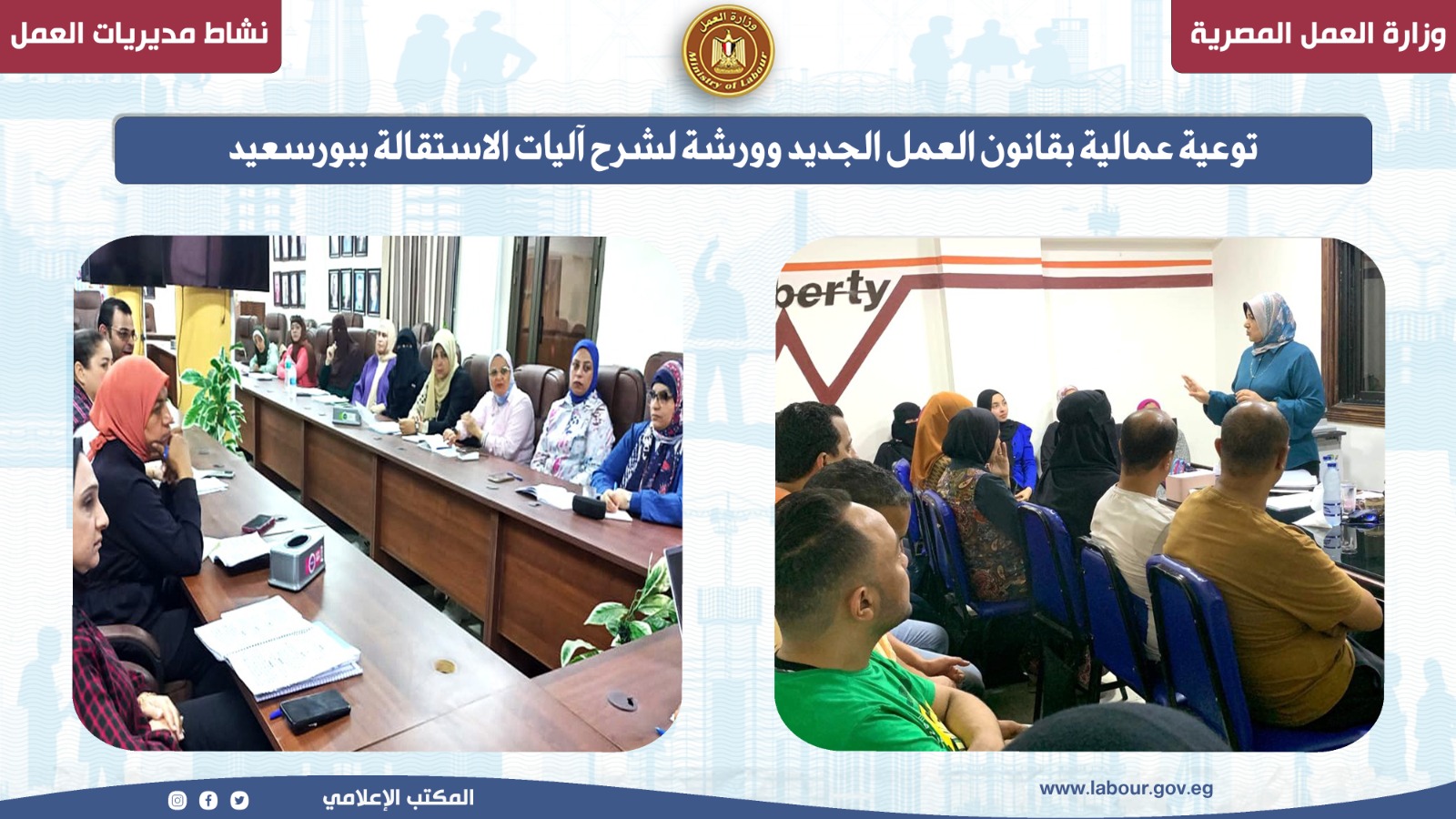 6-توعية عمالية بقانون العمل الجديد وورشة لشرح آليات الاستقالة ببورسعيد