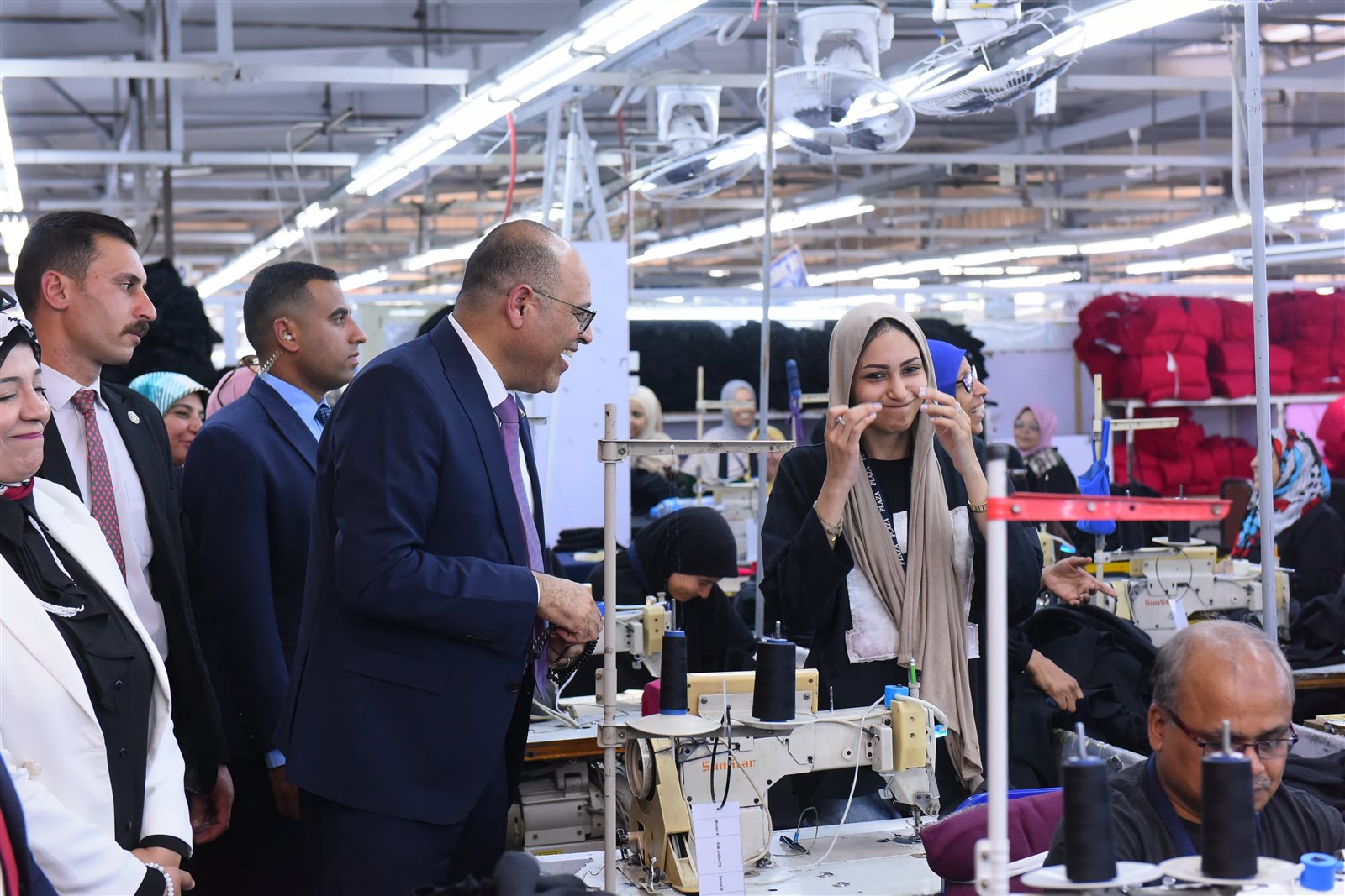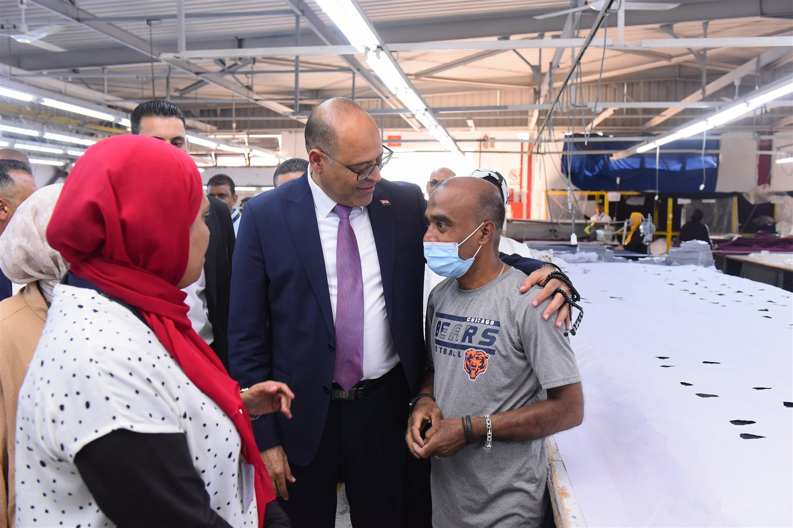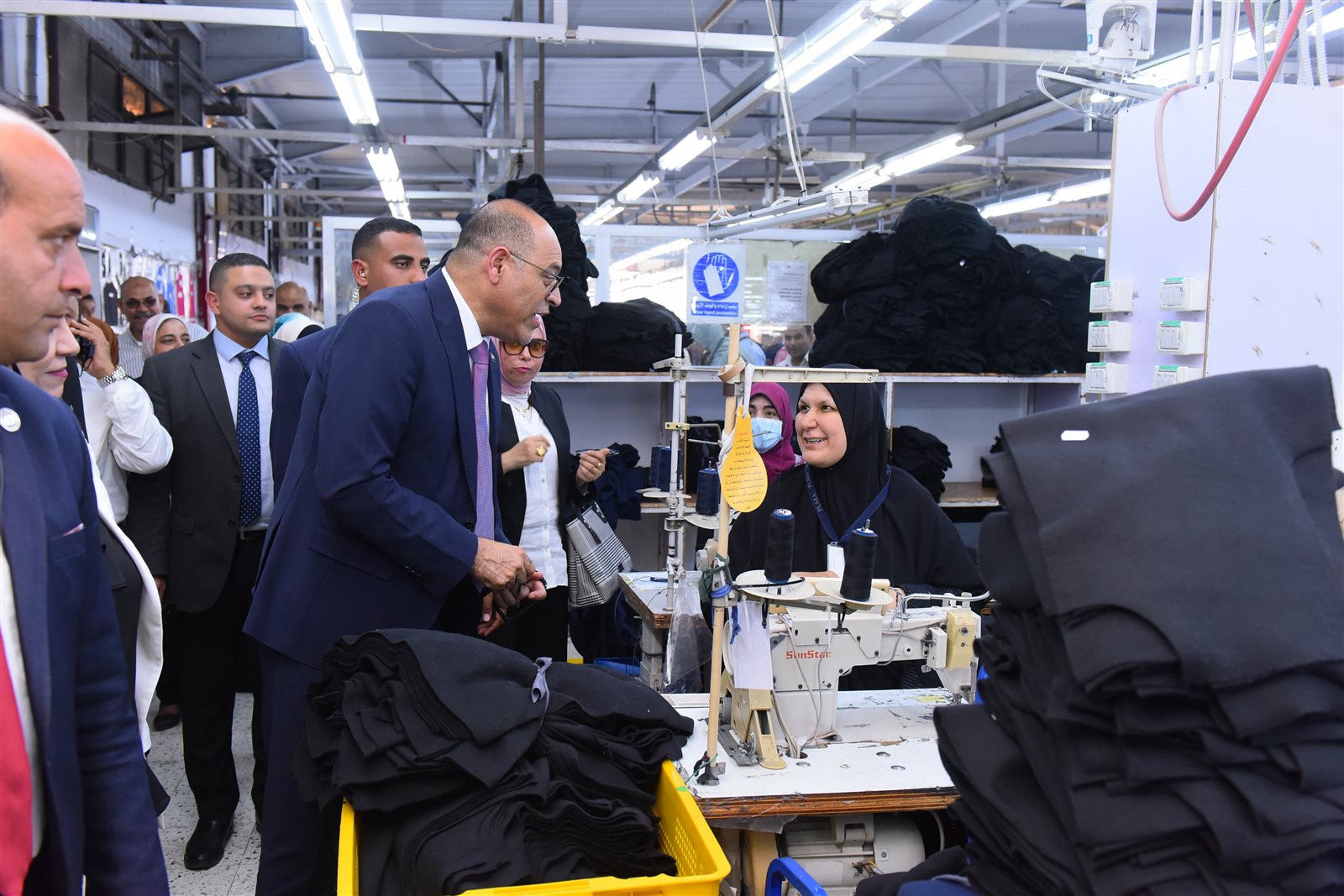 وزير العمل يختتم جولته في السويس بزيارة شركة بلازا لصناعة الملابس الجاهزة