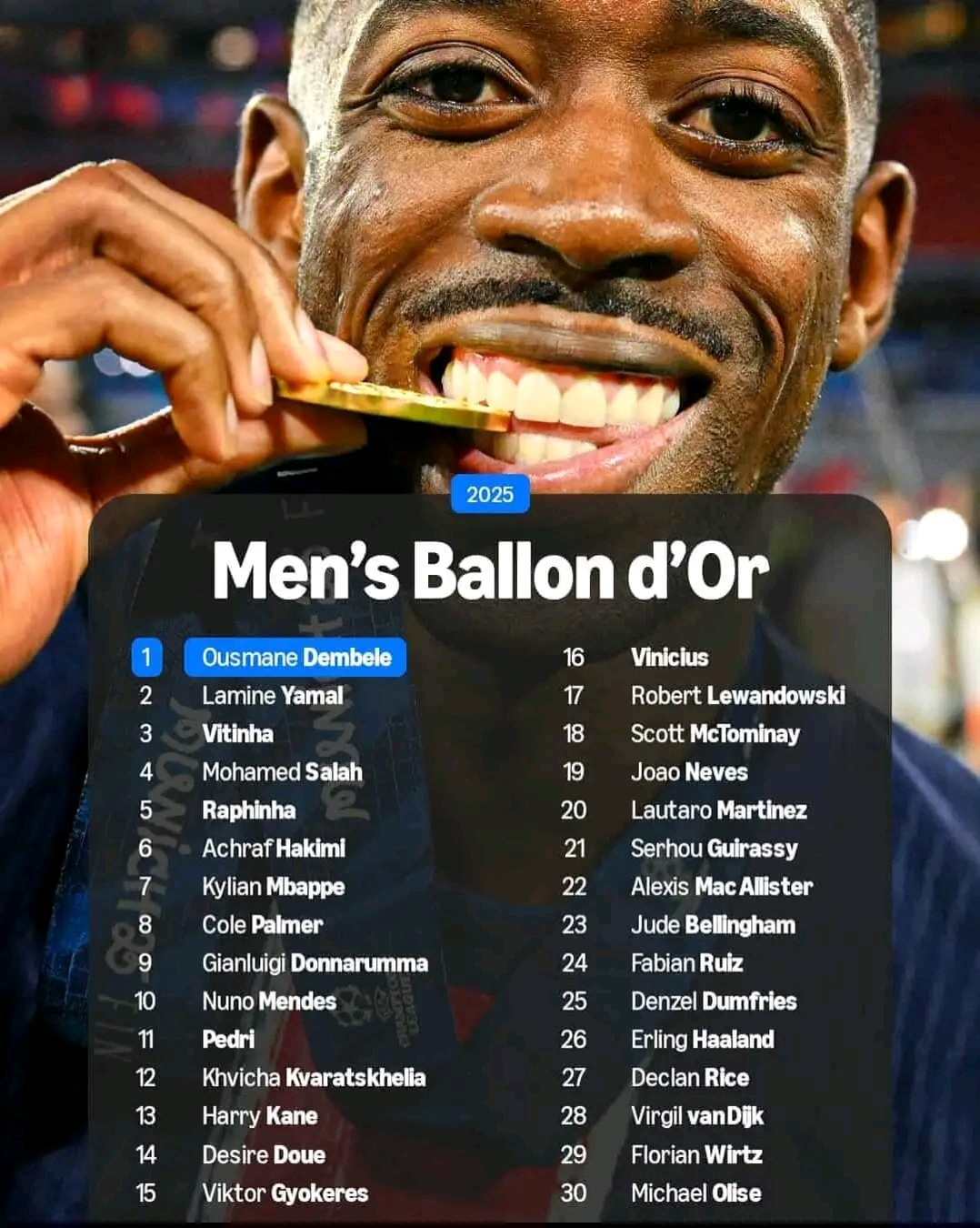 قائمة هذا العام تعكس مزيجًا من الخبرة والشباب، بين أسماء راسخة مثل صلاح ومبابي وليفاندوفسكي، وأخرى صاعدة مثل يامال وبالمر وأوليسي. لكن القصة الأبرز تبقى عودة عثمان ديمبيلي من لاعب لاحقته الإصابات والانتقادات، إلى قمة العالم كلاعب العام والمتوج بالكرة الذهبية 2025.