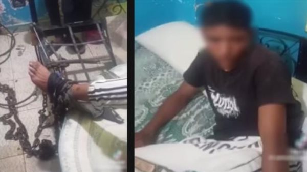 ضبط الأب صاحب واقعة تقييد ابنه بسلسلة لمنعه من تعاطى المخدرات فى أكتوبر
