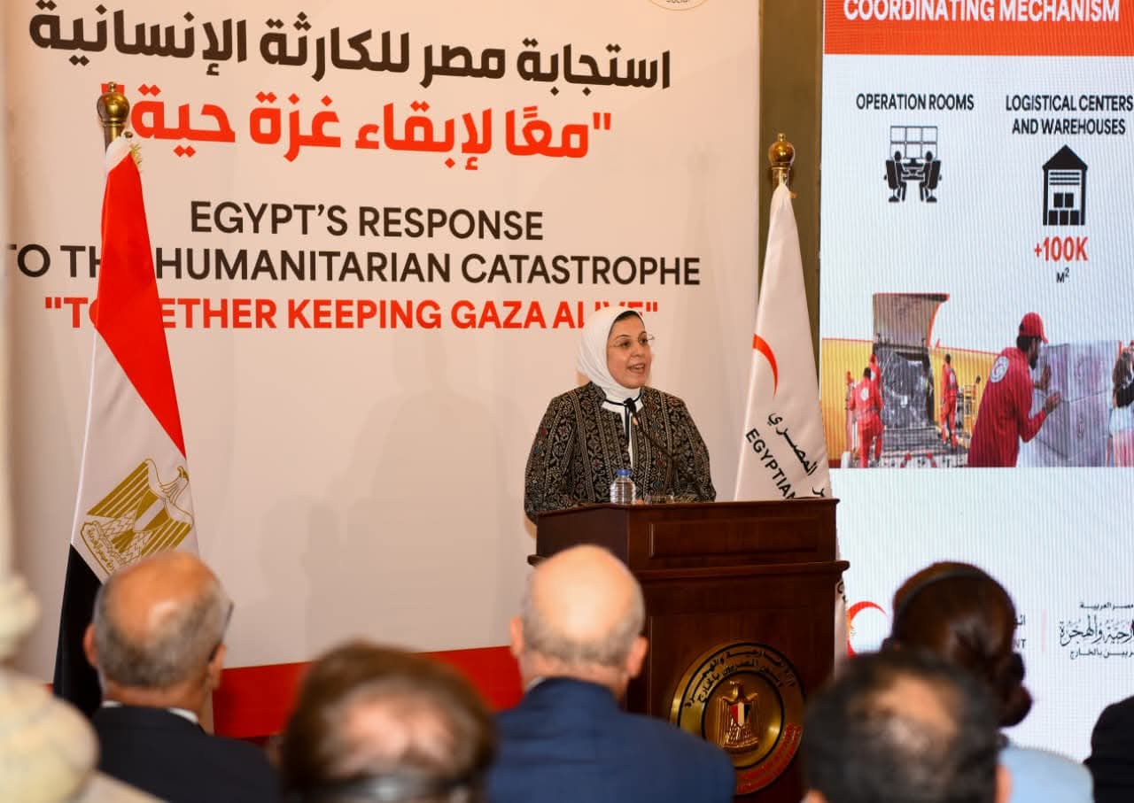 وفي سياق متصل، أكدت الدكتورة مايا مرسي، وزيرة التضامن الاجتماعي ونائبة رئيسة الهلال الأحمر المصري، الهلال الأحمر المصري، أن الاستجابة الإنسانية والإغاثية لقطاع غزة عكست موقفًا تاريخيًا متجذرًا وثابتًا على مدار العقود، فمنذ عام ١٩٤٨ لم تتوان مصر يوما عن تكثيف عملياتها الإنسانية تجاه الأشقاء في فلسطين، بما في ذلك من تعبئة للمساعدات الإنسانية والطبية والإغاثية، وإجلاء الجرحى والمرضى لتؤكد التزامها الإنساني مسألة مبدأ.