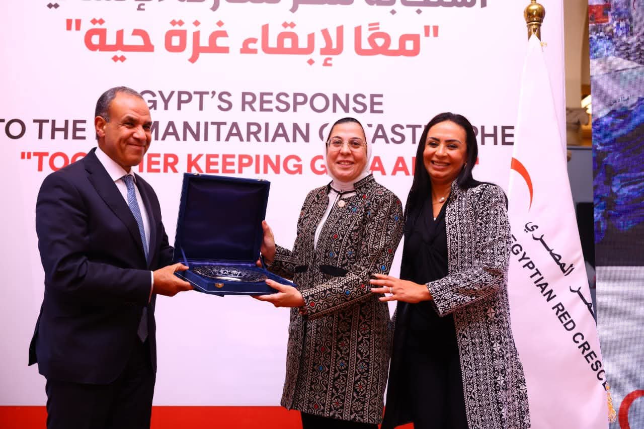 كرم الدكتور بدر عبد العاطي، وزير الخارجية والهجرة وشئون المصريين بالخارج، والدكتورة مايا مرسي وزيرة التضامن الاجتماعي ونائبة رئيسة الهلال الأحمر المصري، الهلال الأحمر المصري لجهوده الإنسانية في الاستجابة لأزمة غزة، خلال فعالية أُقيمت أمس، بعنوان "استجابة مصر للكارثة الإنسانية: معًا لإبقاء غزة حية"، بمشاركة عدد من ممثلي السفارات الأجنبية والمنظمات الدولية العاملة في مصر؛ لتسليط الضوء على الأوضاع المأساوية التي يعيشها الشعب الفلسطيني جراء النقص الحاد في الغذاء والدواء والاحتياجات الأساسية، وذلك في ظل الجهود المصرية في توفير المساعدات الإنسانية العاجلة لقطاع غزة، واضطلاع جمعية الهلال الأحمر المصري بدور محوري في تنسيق ونفاذ المساعدات الإنسانية.