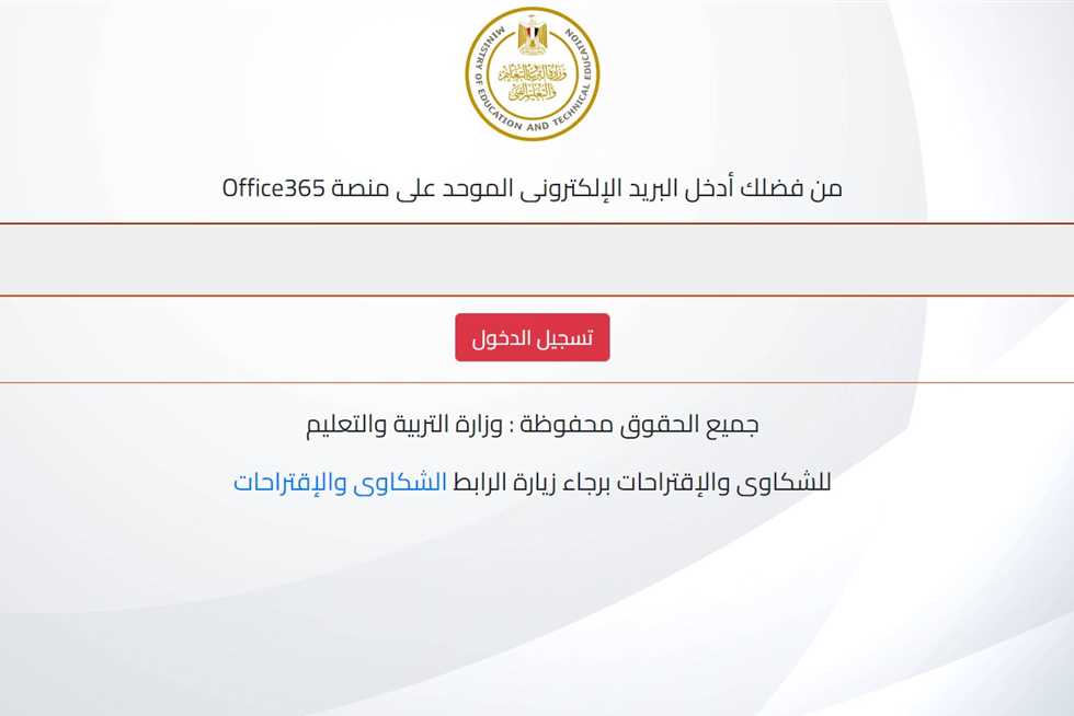 2. تسجيل الدخول بالبريد الإلكتروني الموحد الذي حصل عليه الطالب عند تسجيل استمارة الشهادة الإعدادية. وفي حال فقدان كلمة المرور، يمكن الرجوع للمدرسة أو التواصل مع الدعم الفني عبر منصة أوفيس الموحدة [https://office365.emis.gov.eg].