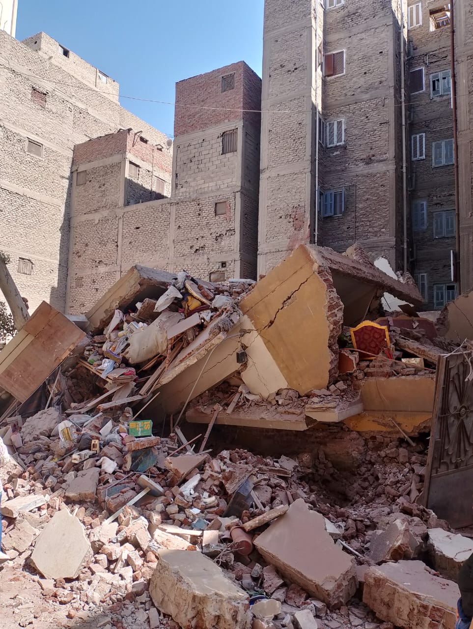 وتلقت الأجهزة الأمنية إخطاراً من غرفة عمليات النجدة يفيد بسقوط المبنى، وعلى الفور انتقلت قوات الحماية المدنية وسيارات الإسعاف والأجهزة الأمنية إلى موقع البلاغ وتبين من الفحص انهيار العقار بالكامل مع سلامة قاطنيه وعدم تسجيل إصابات أو وفيات.