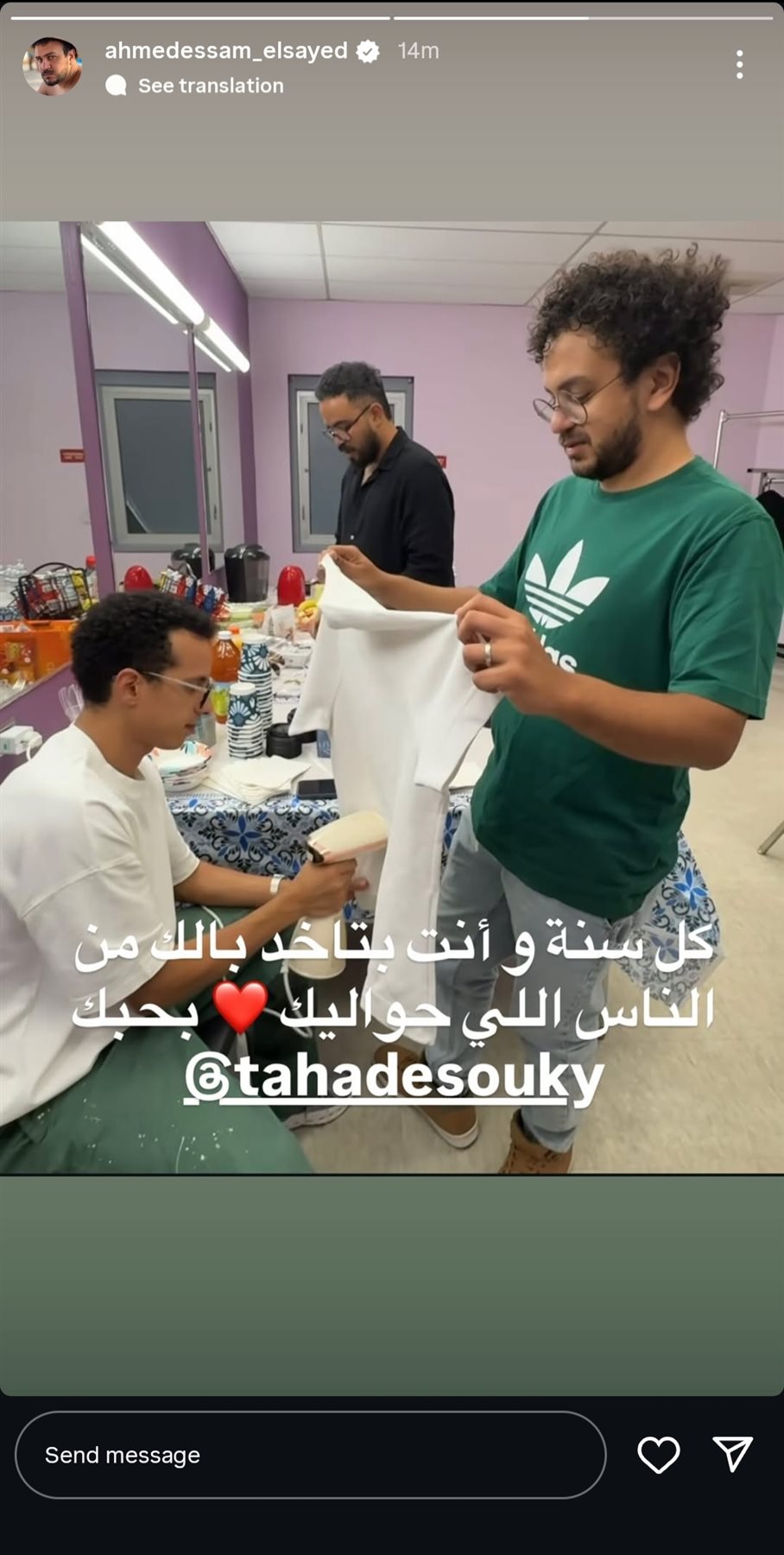 ونشر صورة تجمعهما، من خلال حسابه الرسمي عبر موقع تبادل الصور والفيديوهات القصيرة إنستجرام، عبر خاصية ستوري، وكتب: "كل سنة وأنت بتاخد بالك من كل اللي حواليك.. بحبك".