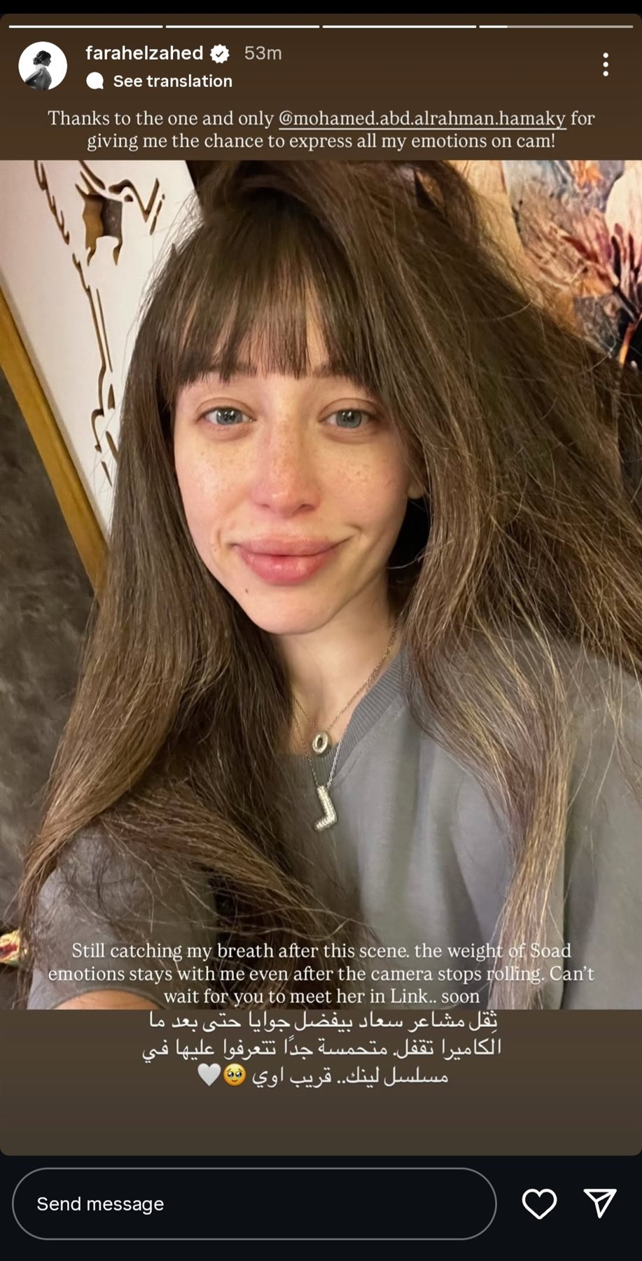 شوقت الفنانة الشابة فرح الزاهد جمهورها لشخصيتها في مسلسل لينك، الذي تشارك في بطولته بجانب الفنانة رانيا يوسف والفنان سيد رجب، والذي تستعد لطرحه خلال الفترة المقبلة ضمن مسلسلات الأوف سيزون.