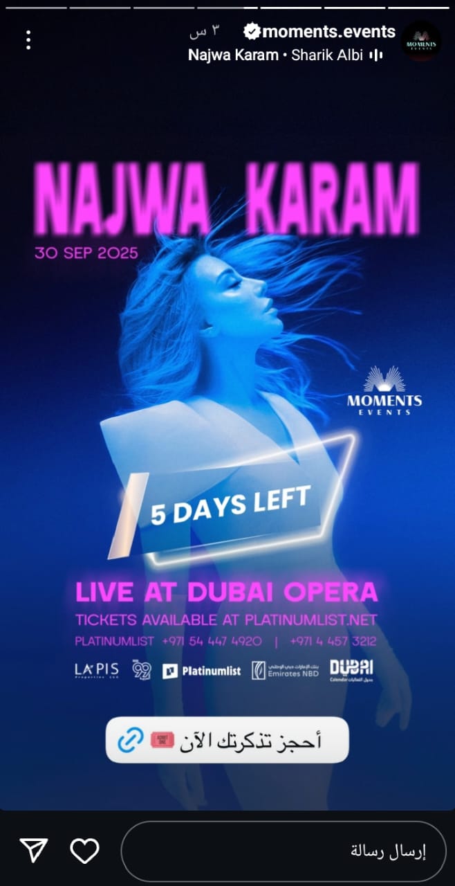 وأعلنت الشركة المنظمة للحفل في دبي عن طرح تذاكر الحفله اليوم الخميس يوم 25 سبتمبر.