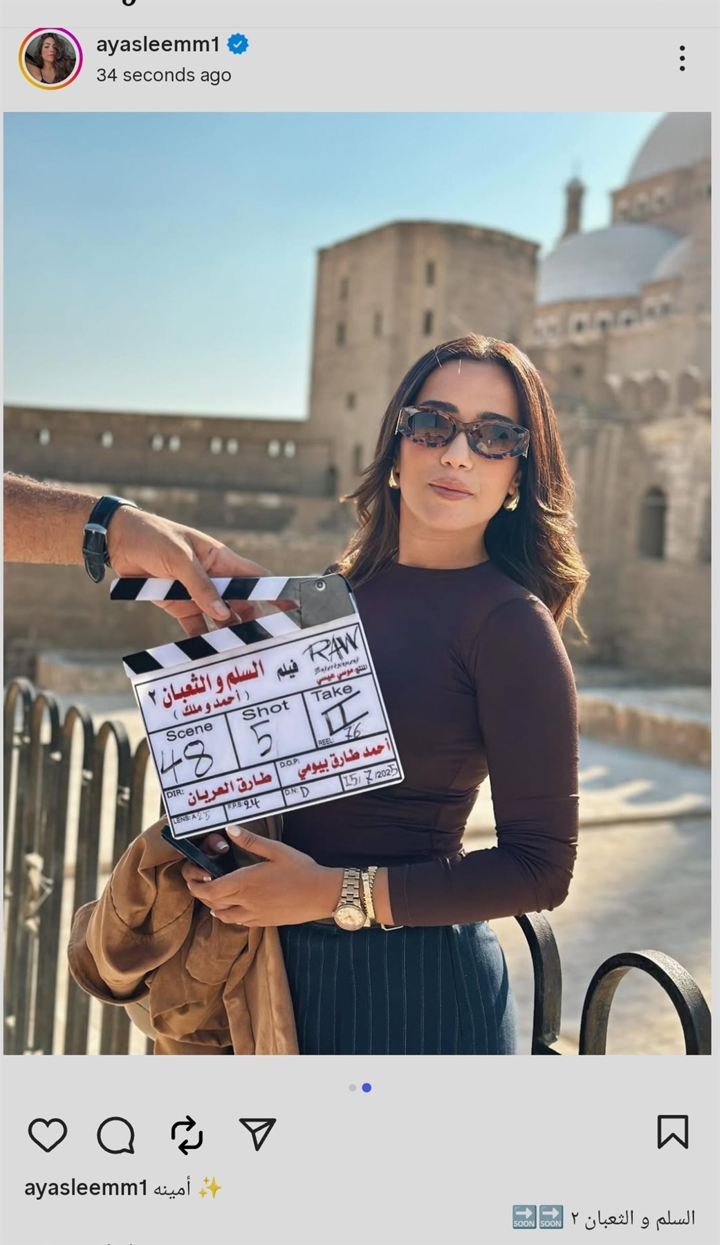 شاركت الفنانة الشابة آية سليم جمهورها كواليس جديدة من تصوير فيلم السلم والثعبان 2 بطولة الفنان عمرو يوسف والفنانة أسماء جلال، والذي من المقرر طرحه في دور العرض السينمائي المصري خلال الفترة المقبلة.